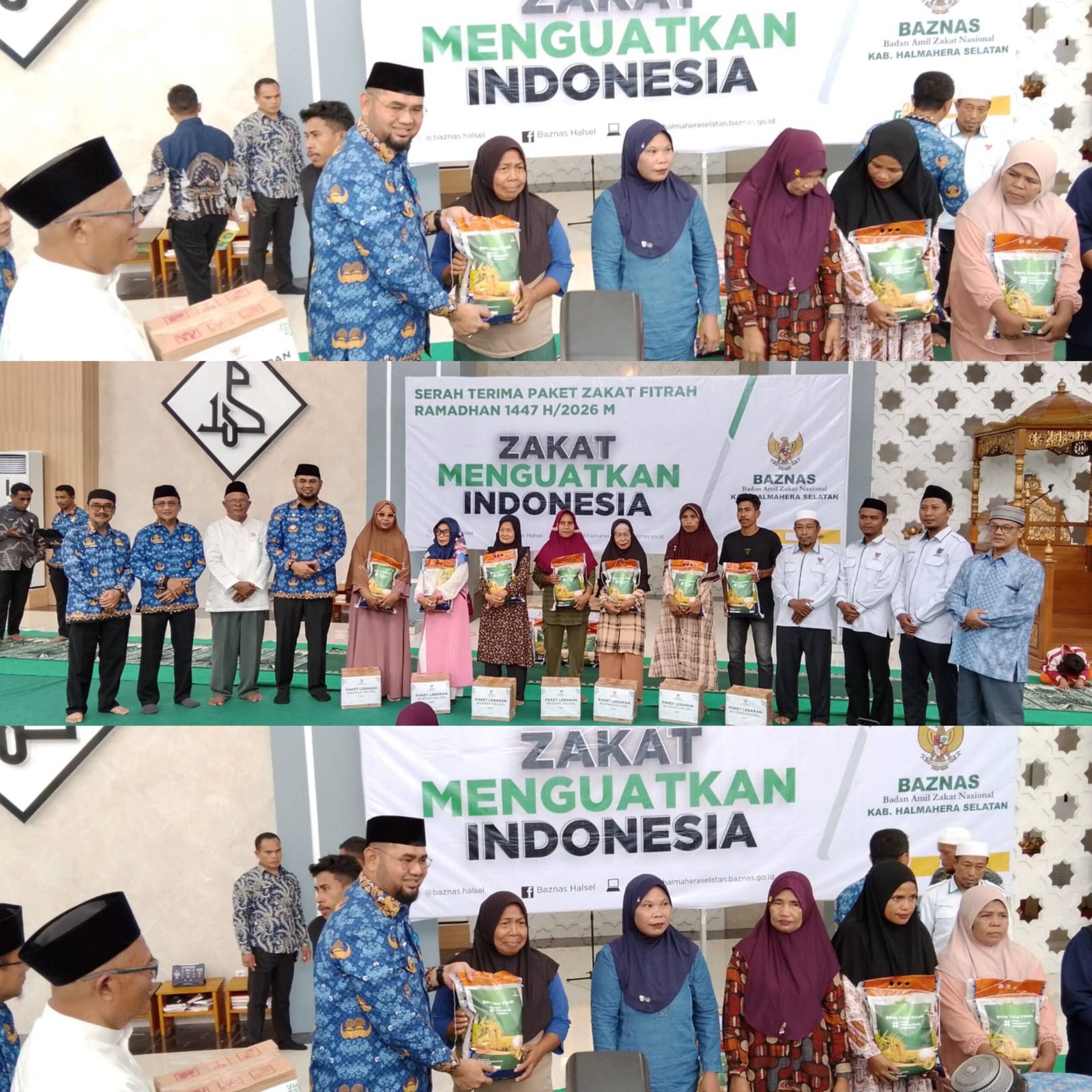 Labuha, jendela malut id ,kamis 12/04/2026 Bupati Halmahera Selatan, Bassam Kasuba secara simbolis menyerahkan paket zakat fitrah kepada masyarakat yang berhak menerima pada momentum bulan suci Ramadhan 1447 Hijriah/2026 Masehi.