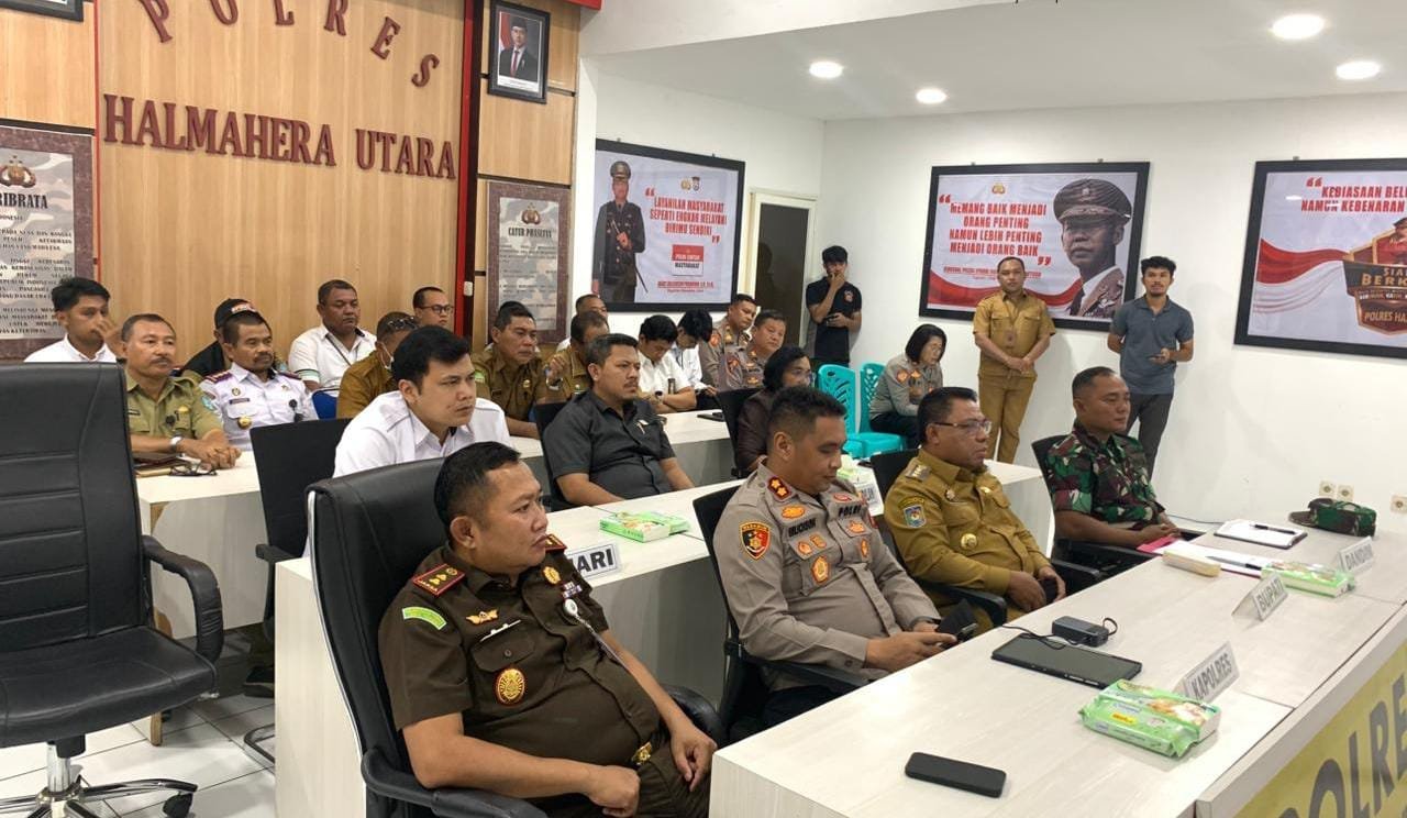 Halmahera Utara, Bupati Halmahera Utara, Piet Hein Babua, menghadiri Rapat Koordinasi Lintas Sektoral menjelang Idul Fitri 1447 H, yang digelar secara virtual di ruang Vicon Polres Halmahera Utara, Desa Gamsungi, Tobelo, (3/2026).