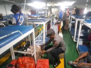 Ternate – Menjelang bulan suci Ramadan, personel Polsek Kawasan Pelabuhan Ahmad Yani melakukan razia minuman beralkohol ilegal dan barang terlarang lainnya di atas kapal yang tiba dari Pelabuhan Manado, Jumat (20/02/26). Kegiatan ini digelar di Pelabuhan Ahmad Yani, Kelurahan Kota Baru, Kecamatan Ternate Tengah, sebagai upaya preventif menjaga keamanan dan ketertiban masyarakat.