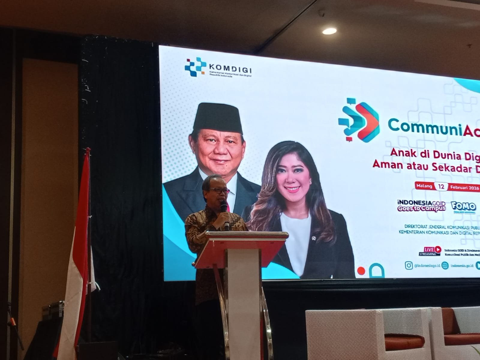 Pesan tersebut disampaikan Direktur Informasi Publik Direktorat Jenderal Komunikasi Publik dan Media (Ditjen KPM) Kemkomdigi, Nursodik Gunarjo, saat membuka kegiatan CommuniAction Malang bertema “Anak di Dunia Digital: Aman atau Sekadar Diawasi?” di Kota Malang, Kamis (12/2/2026). Ia hadir mewakili Dirjen KPM Kemkomdigi, Fifi Aleyda Yahya.