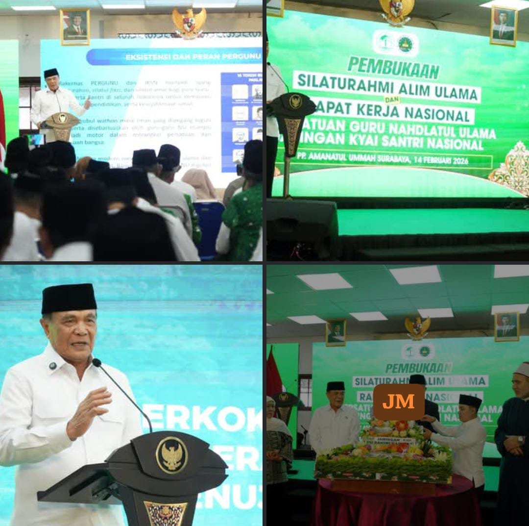 Hal itu disampaikan Djamari saat membuka acara Silaturahmi Alim Ulama dan Rapat Kerja Nasional Persatuan Guru Nahdlatul Ulama (PERGUNU) dan Jaringan Kiai Santri Nasional (JKSN) di Surabaya, Jawa Timur, Sabtu (14/2/2026).