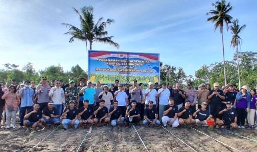 Kapolres Halmahera Utara, AKBP Erlichson Pasaribu, juga menyatakan dukungannya penuh terhadap program penanaman jagung ini sebagai bagian dari upaya bersama mewujudkan ketahanan pangan nasional.