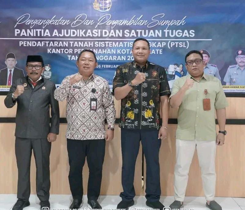 Ternate – Pemerintah Kota Ternate menyatakan komitmennya dalam mendukung percepatan Program Pendaftaran Tanah Sistematis Lengkap (PTSL) Tahun 2026, termasuk untuk wilayah pulau-pulau terluar. Dukungan tersebut ditegaskan dalam kegiatan pelantikan Satuan Tugas (Satgas) PTSL yang digelar oleh Kantor Pertanahan Kota Ternate.