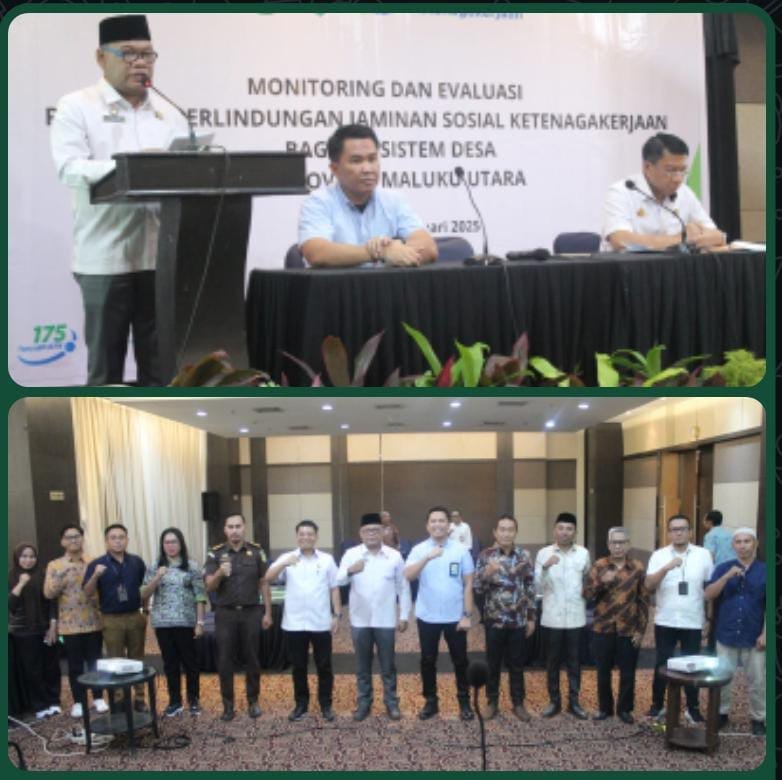 TERNATE – Pemerintah Provinsi Maluku Utara terus memperkuat komitmennya dalam memperluas perlindungan jaminan sosial ketenagakerjaan bagi pekerja di tingkat desa. Hal tersebut ditegaskan dalam kegiatan Monitoring dan Evaluasi (Monev) Program Perlindungan Jaminan Sosial Ketenagakerjaan bagi Ekosistem Desa yang digelar oleh BPJS Ketenagakerjaan bekerja sama dengan Kejaksaan Tinggi Maluku Utara di Hotel Bella, Rabu (25/2/2026).