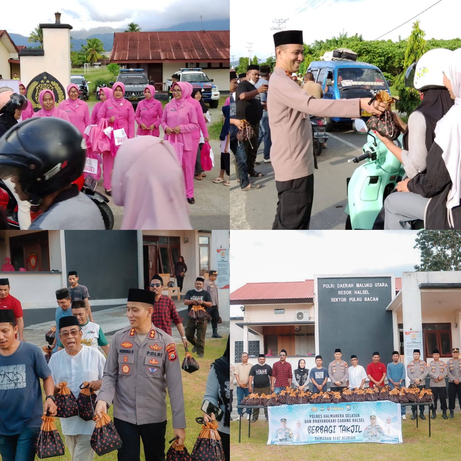LABUHA HR — Polres Kabupaten Halmahera Selatan, menggandeng Wartawan dan Komonutas penulis (Warkop) dan Komunitas Jurnalis Halsel (KJH) gelar kegiatan Ramadan 1447 H, dengan pembagian takjil gratis kepada masyarakat, dipusatkan depan Polsek Bacan desa Mandaong kecamatan Bacan selatan. Jumat 6/3/2025. Kegiatan program berbagi ini memang rutin dilaksanakan setiap minggu selama bulan Ramadan, sehingga tak heran jika masyarakat sudah menantikan momen tersebut.