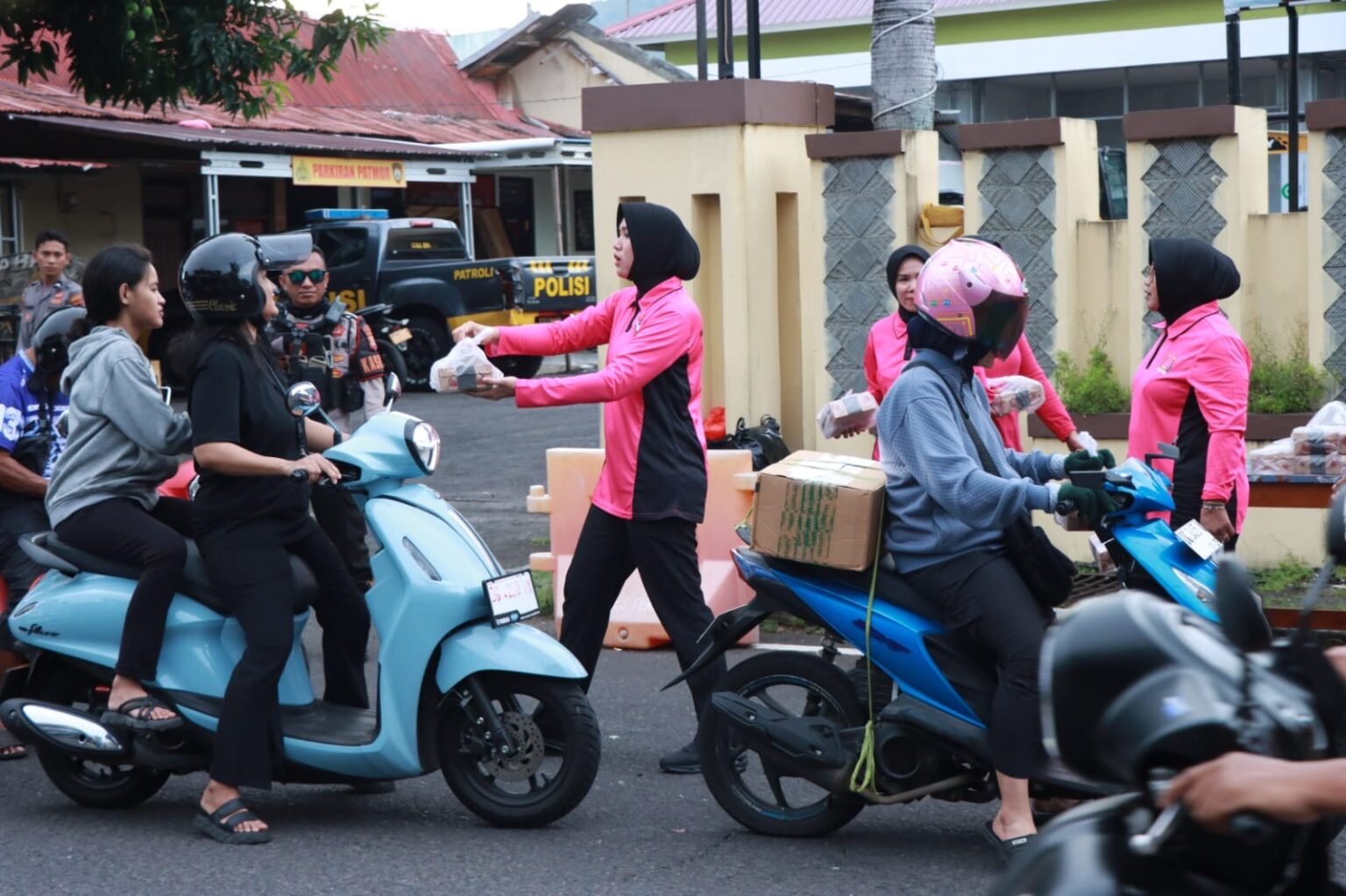 TERNATE – Menyambut bulan suci Ramadan, Kepolisian Resor Ternate bersama Bhayangkari Cabang Ternate menggelar aksi sosial membagikan takjil kepada masyarakat yang melintas di depan Markas Komando (Mako) Polres Ternate, Rabu (4/3/2026).