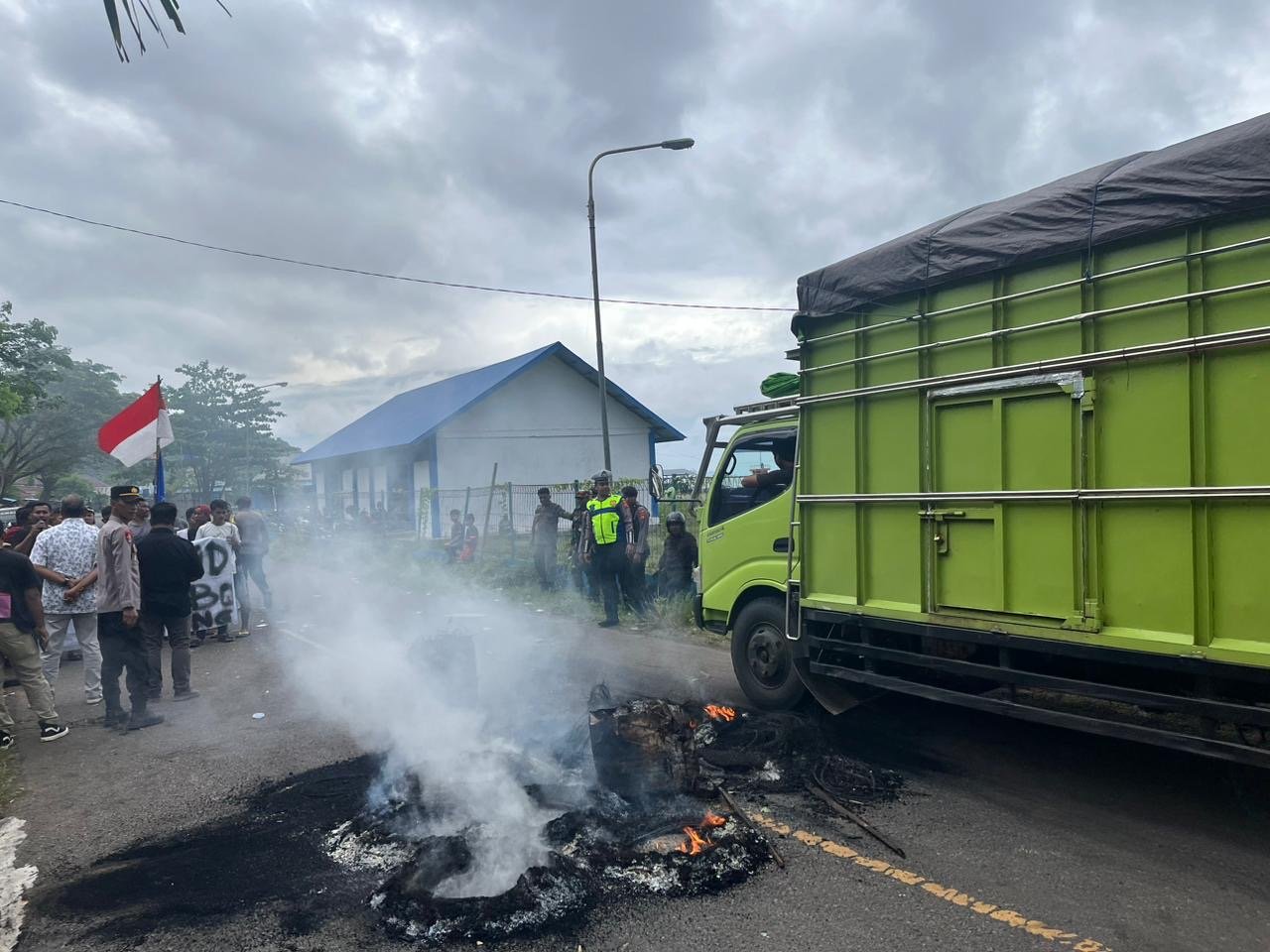 TIDORE — Puluhan personel Polresta Tidore dikerahkan untuk mengamankan aksi unjuk rasa warga yang menuntut pencopotan Kepala Desa Gita Raja. Aksi tersebut berlangsung di depan Kantor Desa Gita Raja, Kota Tidore Kepulauan, Kamis (12/2).