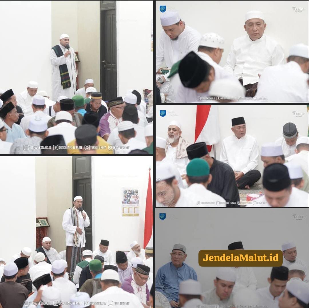 TERNATE – Wali Kota Ternate, Tauhid Soleman, menghadiri kegiatan haul yang digelar Mufti Kesultanan Moloku Kie Raha, Dr. (HC) Al Habib Abubakar bin Hasan Al-Attas Az-Zaidi, di Majelis Ta’lim Al Habib Abubakar bin Hasan Al-Attas, Kelurahan Gamalama, Kecamatan Ternate Tengah, Rabu (4/3/2026).